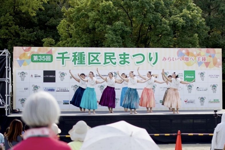 日々の練習の他に、春秋の公園フラ、地域のお祭りや保育園・福祉施設でのフラの発表、オリやウコン染め、イプのワークショップなども行っています。