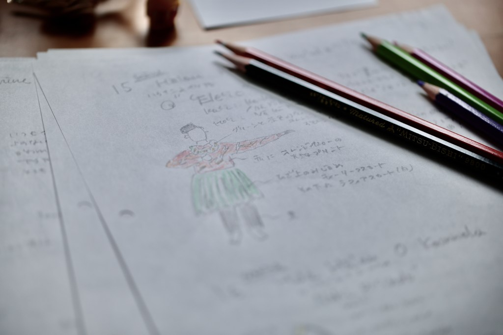 絵を描くために、よく見て、見たものを手を動かして描く、感じたことをコメントで書いて、耳ではライブ音楽を聴いて、一つ終わると次のインタビューからまたメモをして、CMで息つぎ。。毎日6時間の講義を受けているような、画面を通してフラを何曲も習っているような、濃密で学びの多い3日間でした。